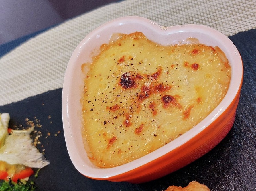 牛乳を入れるので、焼き芋にあまり含まれないたんぱく質も一緒に摂れて、栄養満点のグラタンレシピです。