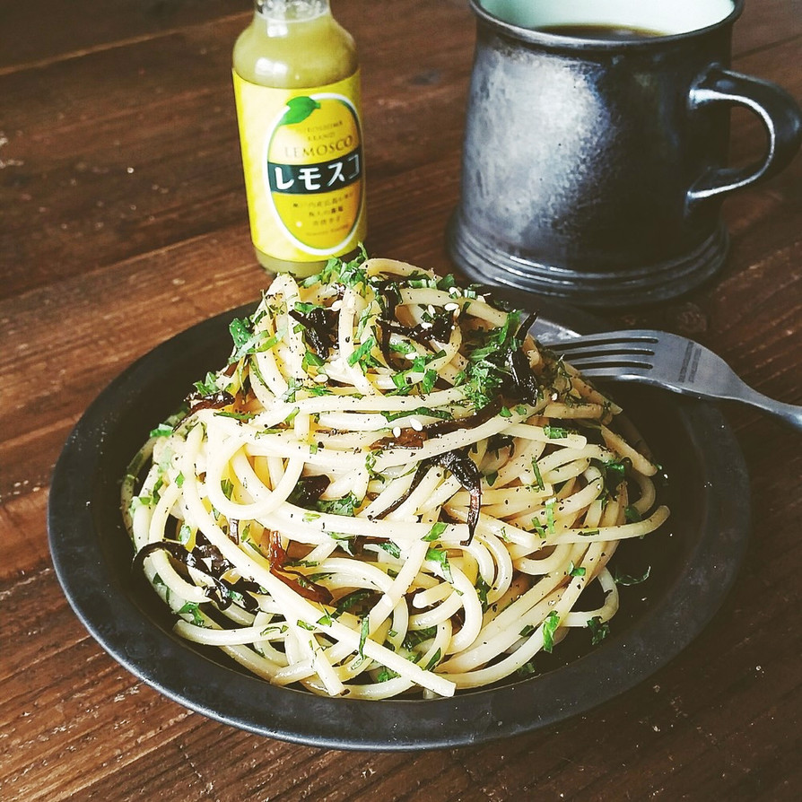 ②大葉たっぷり!塩昆布とバターのシンプルパスタ