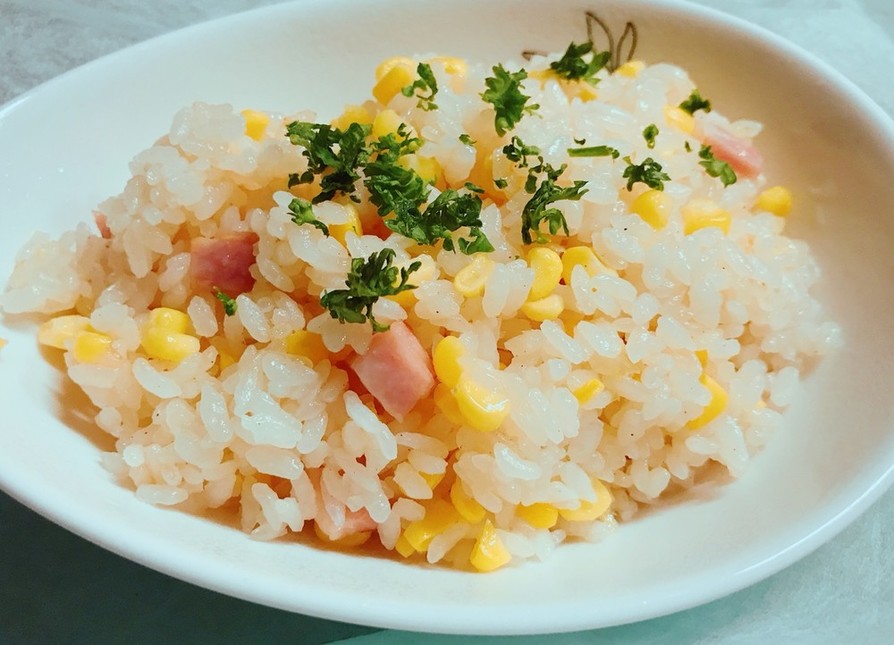 コーンとベーコンの定番ピラフを炊飯器で簡単に作るレシピです。