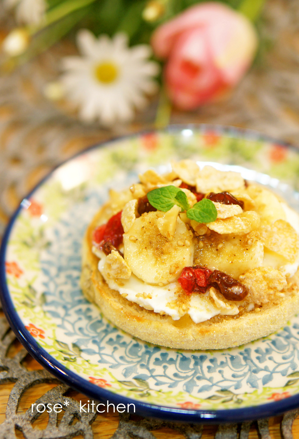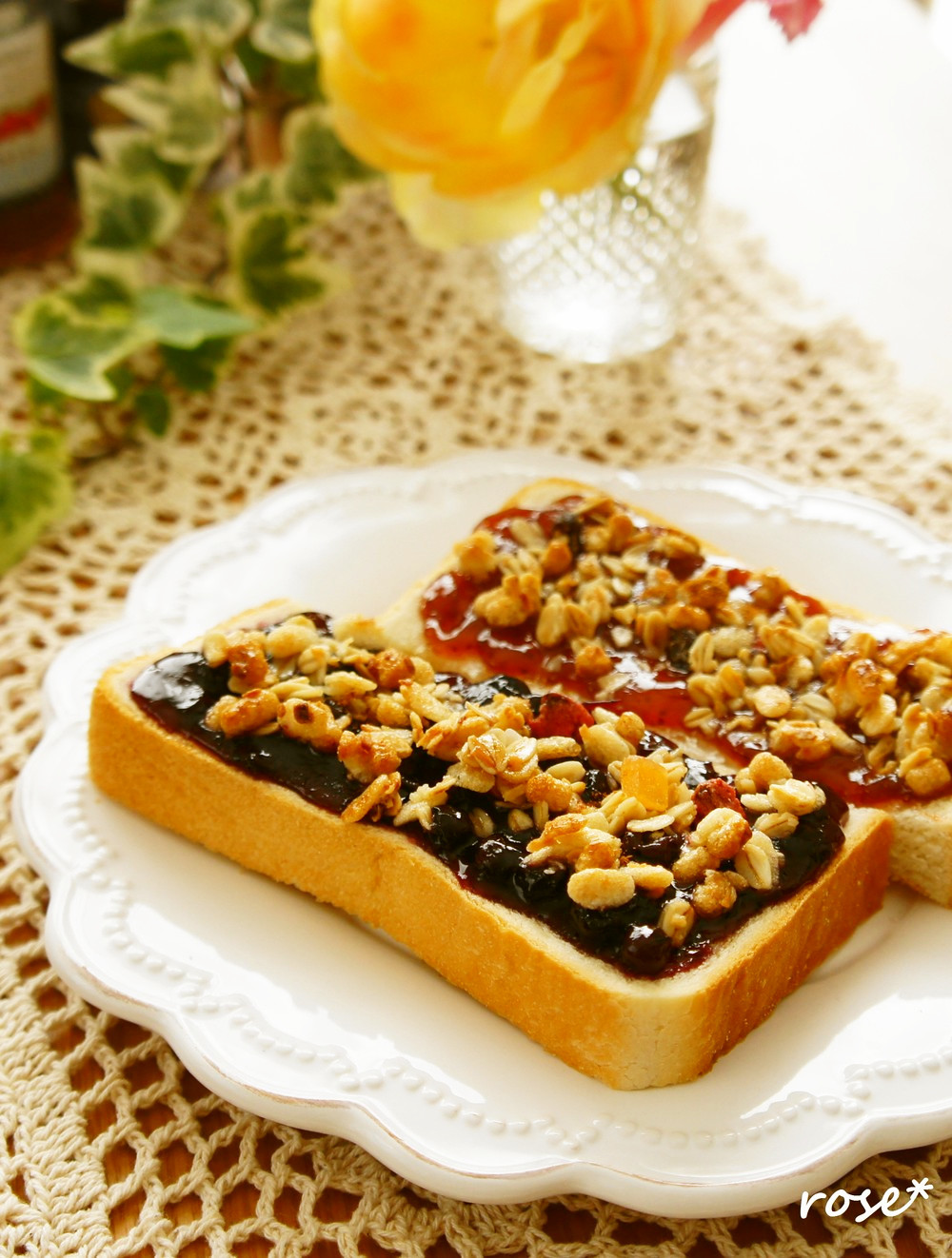トーストに好きなジャムとシリアルをかけて焼くだけなのに、なんだかおしゃれですね!